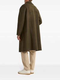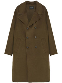 double-sided coat Highlights - Khaki - Wool-cashmere blend - Double-breasted button fastening - Notched lapels - Long sleeves - Two side welt pockets - Straight hem - Knee-length Made in France Composition Outer: Wool 90%, Cashmere 10% Lining: Acetate 52%, Cupro 48%