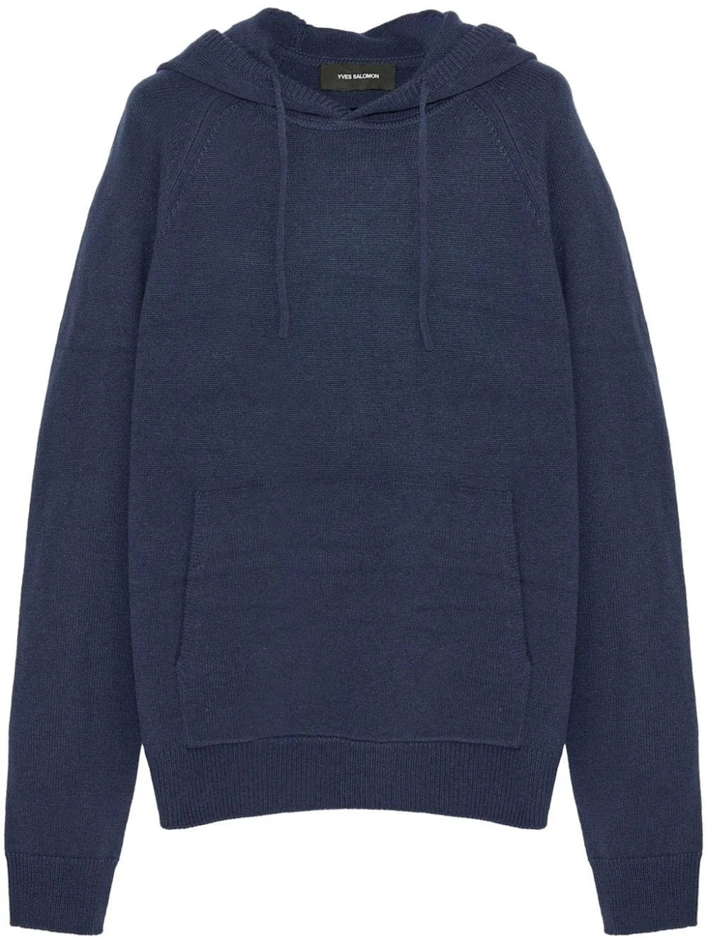 knit hoodie Highlights - Blue - Wool-cashmere blend - Knitted construction - Drawstring hood - Front pouch pocket - Long sleeves - Ribbed cuffs and hem - Straight hem Made in France Composition Wool 70%, Cashmere 30%