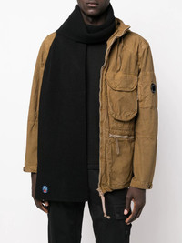 knitted logo-patch scarf knitted logo-patch scarf from YVES SALOMON featuring black, wool-cashmere blend, knitted construction, logo patch to the front and finished edge. Made in France Composition Wool 70%, Cashmere 30% SIZE & FIT Model measurements Height 6 ft 2 in(1.87 m) Bust/Chest 36.41 in(92.5 cm) Hips 37 in(94 cm) Waist 29.52 in(75 cm) Measurement LENGTH 74.8 in(190 cm) WIDTH 9.44 in(24 cm) Washing instructions Hand Wash