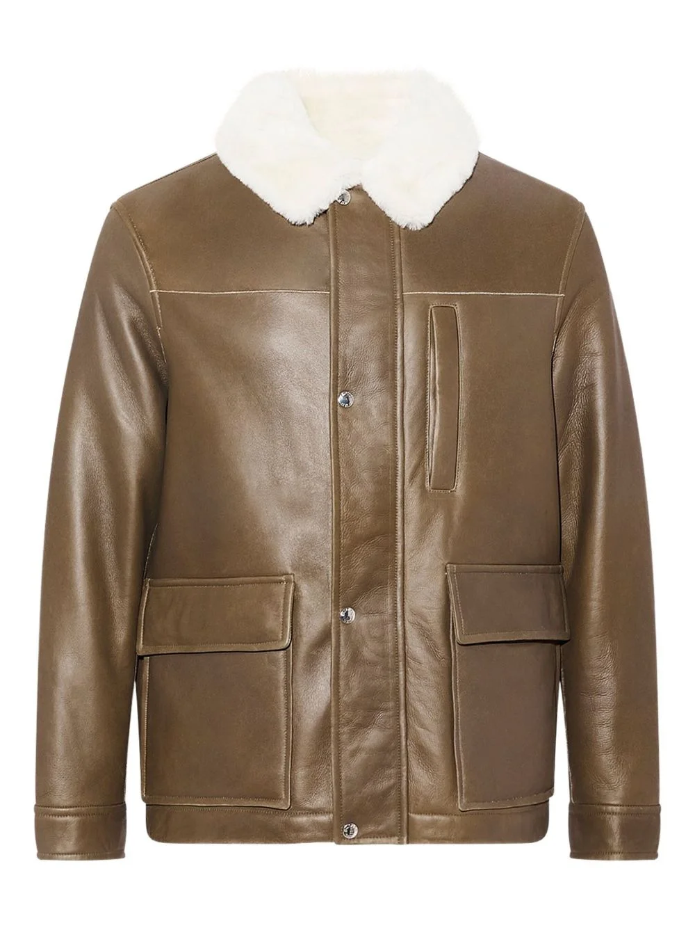 shearling collar leather jacket Highlights Made in France Composition Outer: Lamb Skin 100% Lining: Sheep Skin/Shearling 100%