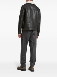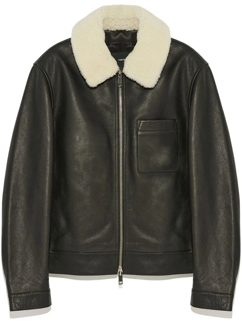 shearling collar leather jacket Highlights - Black - Sheepskin - Zip fastening - Shearling collar - Detachable collar - Long sleeves - Chest patch pocket - Straight hem Made in France Composition Lining: Acetate 52%, Cupro 48% Outer: Sheep Skin/Shearling 90%, Lambskin 10%