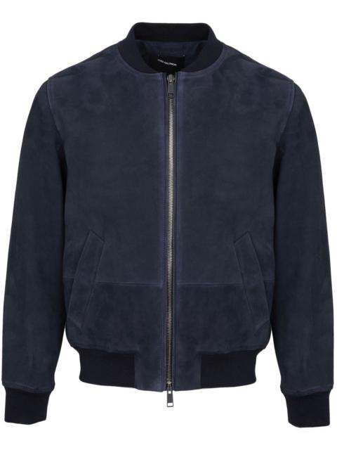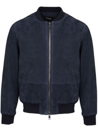 suede bomber jacket Highlights - Navy blue - Front two-way zip fastening - Two side welt pockets - Ribbed cuffs and hem - Full lining Made in France Composition Outer: Lamb Suede 100% Lining: Viscose 52%, Cotton 48% Washing instructions Specialist Cleaning