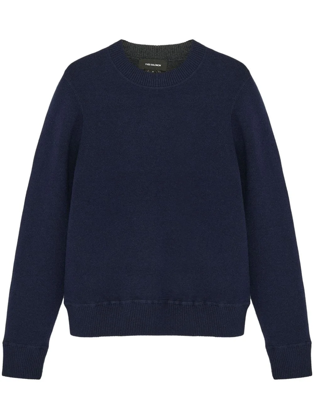 two-tone reversible knit jumper Highlights - Blue/grey - Wool-cashmere blend - Knitted construction - Two-tone design - Reversible - Crew neck - Long sleeves - Ribbed cuffs and hem - Straight hem Made in France Composition Wool 70%, Cashmere 30%