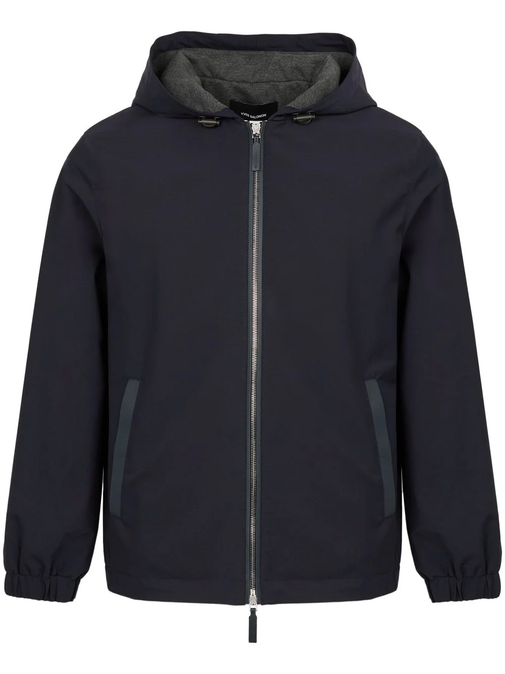 waterproof hooded jacket Highlights - Navy blye - Front two-way zip fastening - Two side welt pockets - Classic hood - Elasticated cuffs Made in France Composition Outer: Polyester 45%, Wool 45%, Lamb Skin 5%, Cotton 4%, Elastane 1% Lining: Viscose 52%, Cotton 48% Washing instructions Do Not Wash/Do Not Dry Clean