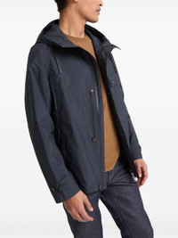 waterproof jacket Highlights - Navy blue - Front button and zip fastening - Chest flap pocket - Two side welt pockets - Drawstring hood Made in France Composition Polyester 100%