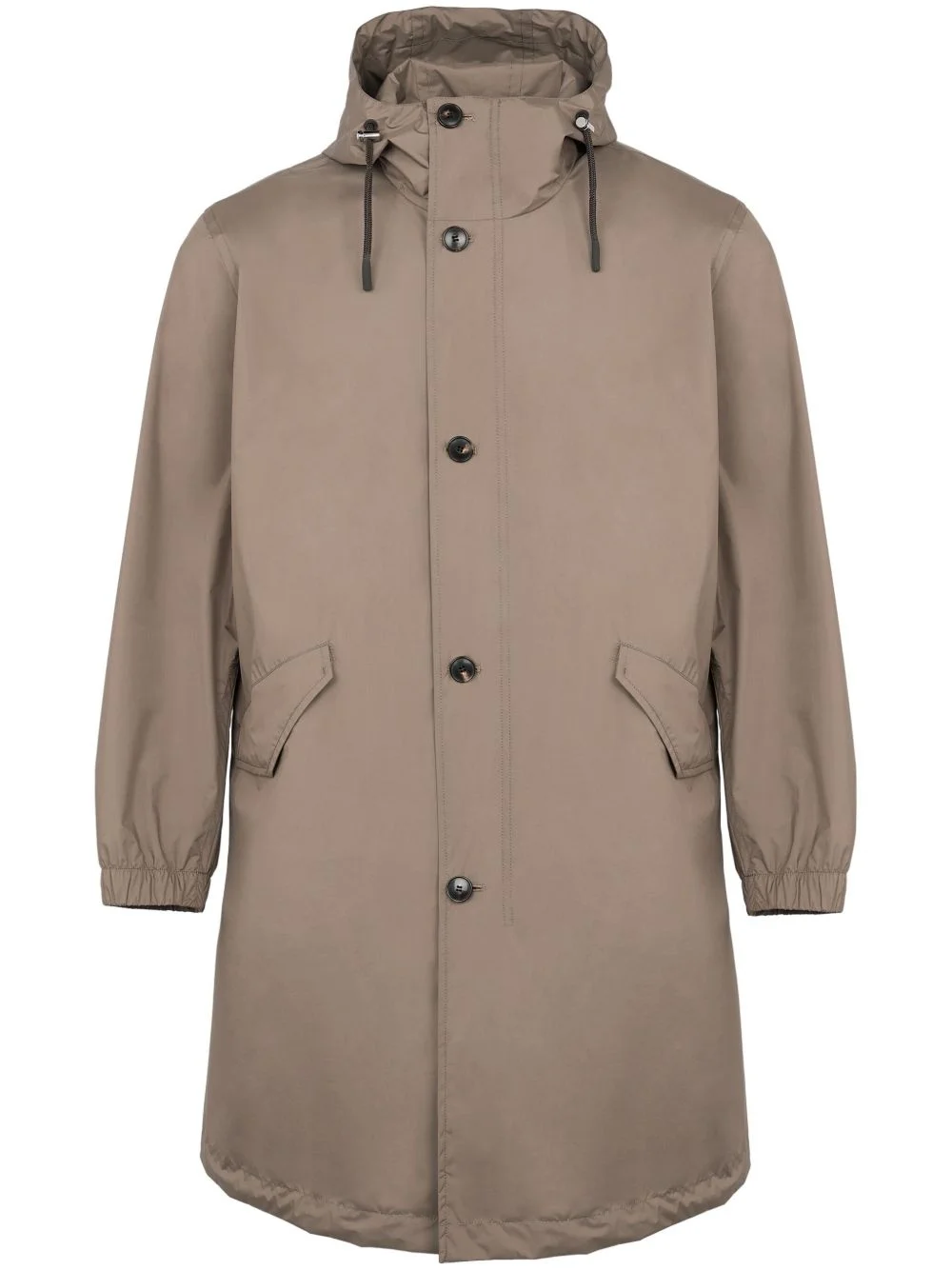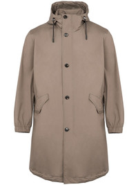 waterproof parka Highlights - Brown - Front button fastening - Drawstring hood - Two side flap pockets - Elasticated cuffs Made in France Composition Polyester 100%