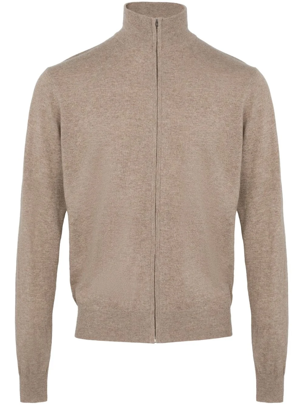 zip-up cardigan Highlights - Beige - Front zip fastening - Mock neck - Ribbed cuffs and hem Made in France Composition Organic Wool 70%, Organic Cashmere 30%