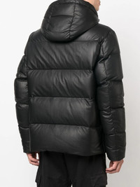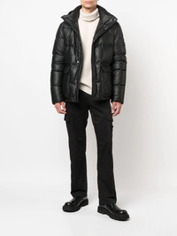zipped padded jacket black lambskin feather down padded design round neck concealed front fastening long sleeves Made in France Composition Lining: Feather Down 100%, Polyamide 100%, Polyester 68%, Viscose 32% Outer: Lamb Skin 100% SIZE & FIT Model measurements Height 6 ft 1 in(1.85 m) Bust/Chest 35.82 in(91 cm) Hips 37.79 in(96 cm) Waist 29.13 in(74 cm) FittingInformation This piece fits true to size. We recommend you get your regular size Cut for a loose fit Made with a mid-weight non-stretch fabric Washing instructions Specialist Cleaning