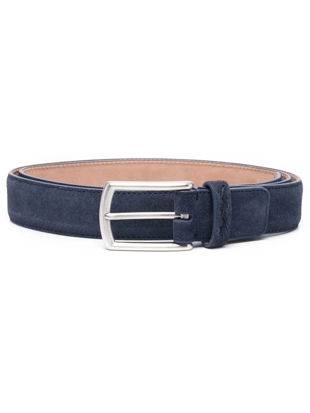 buckle-fastening leather belt buckle-fastening leather belt from Z ZEGNA featuring navy blue, calf suede, buckle fastening, punched holes and square tip. Made in Italy Composition Calf Suede 100% SIZE & FIT Measurement Maximum Length 45.27 in(115 cm) Minimum Length 41.33 in(105 cm) WIDTH 1.18 in(3 cm)
