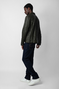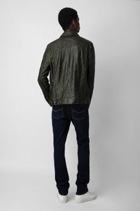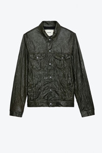 Men's crinkled leather jacket. Description & details - Men's crinkled leather jacket - Shirt collar - 2 flat button pockets on chest - Long sleeves with rounded cuffs - Snap buttons down front This item is true to size. We recommend buying your usual size. Composition 100% LAMBSKIN Care Do not expose your item to a source of heat or to sunlight for a prolonged period. In the event of accidental exposure to water, leave your item to dry at room temperature, away from direct light. To maintain the shine of your smooth or crumpled leather item, use a leather cream or polish. If your item needs cleaning, we recommend contacting a leather specialist. Product code: RMOW00040_OLIVIER