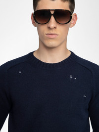 Crew neck sweater with distressed effect. Description & details - Wool and cashmere sweater - Distressed effect - Crew neck - Long sleeves Model is 188 cm / 6' 2" and is wearing a size M This item fits true to size. Choose your usual size. Composition 90% Wool* 10% Cashmere Care - Hand-wash or machine-wash on a 20°C wool cycle with a maximum spin speed of 400 rpm - Do not wring - Air dry flat - Iron inside out at a maximum of 110°C, avoiding any customised details Product code: KMSW01788_ENCRE