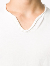 Monastir Henley-neck T-shirt Highlights - White - Cotton - Faux button detailing - Henley neck - Short sleeves - Raw-cut edge Imported Composition Cotton 100% SIZE & FIT Model measurements Height 6 ft 1 in(1.85 m) Bust/Chest 35.82 in(91 cm) Hips 37.79 in(96 cm) Waist 29.13 in(74 cm) FittingInformation This piece fits true to size. We recommend you get your regular size Cut for a relaxed fit Made with a mid-weight fabric Washing instructions Machine Wash
