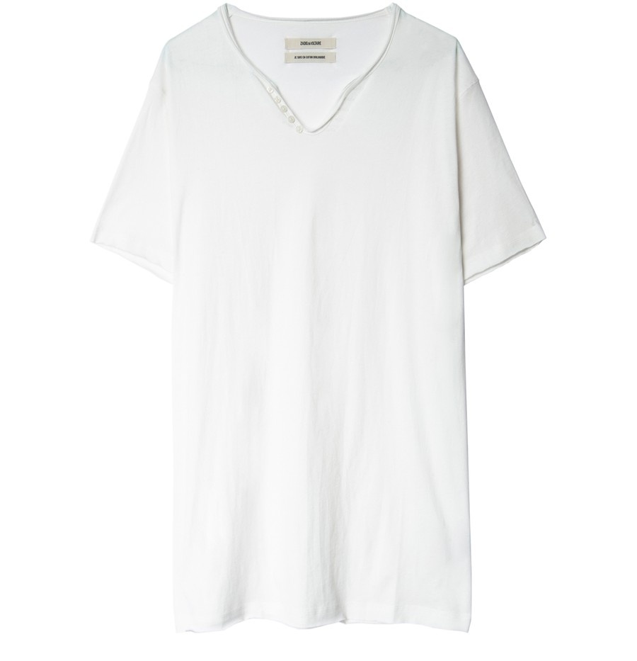 DESCRIPTION - Short-sleeved t-shirt - Loose fit - V-neck - Buttons on the front DETAILS AND CARE MATERIAL: 100% Cotton COLOR: blanc COUNTRY OF MANUFACTURE: Portugal PRODUCT CODE: ZAD53PTTWHT1T1AA00