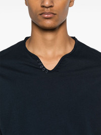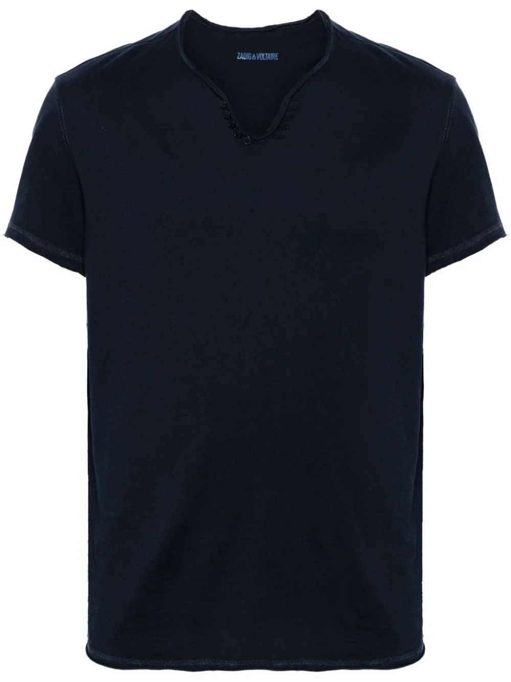 Henley-neck cotton T-shirt Highlights - Navy blue - Organic cotton - Lightweight jersey - Henley neck - Short sleeves - Straight hem Imported Composition Organic Cotton 100% SIZE & FIT Model measurements Height 6 ft 1 in(1.85 m) Bust/Chest 35.43 in(90 cm) Hips 37.79 in(96 cm) Waist 29.92 in(76 cm) FittingInformation Designed for a relaxed fit, this piece allows for comfort and movement when worn Made from a lightweight non-stretch fabric, this piece offers minimal elasticity when worn This piece fits true to size – take your usual size
