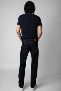 Men’s straight-cut raw denim jeans Description & details Wide-leg straight-cut raw denim 5-pocket jeans. - Zadig&Voltaire men’s straight-cut jeans - Wide legs - Raw denim - 5 pockets - Button fly - Belt loops - Leather label on back Model is 188 cm/6'2" and is wearing a size 30 Model is 188 cm / 6' 2" and is wearing a size 30 This item is true to size. We recommend buying your usual size. Composition 98% COTTON** 2% ELASTANE Care - Machine-wash inside out on a 30°C delicate cycle with similar colours - Air dry - Iron inside out at a maximum of 150°C, or in case of customised details, at a maximum of 110°C avoiding the customised details Product code: WMJE00014_BRUT