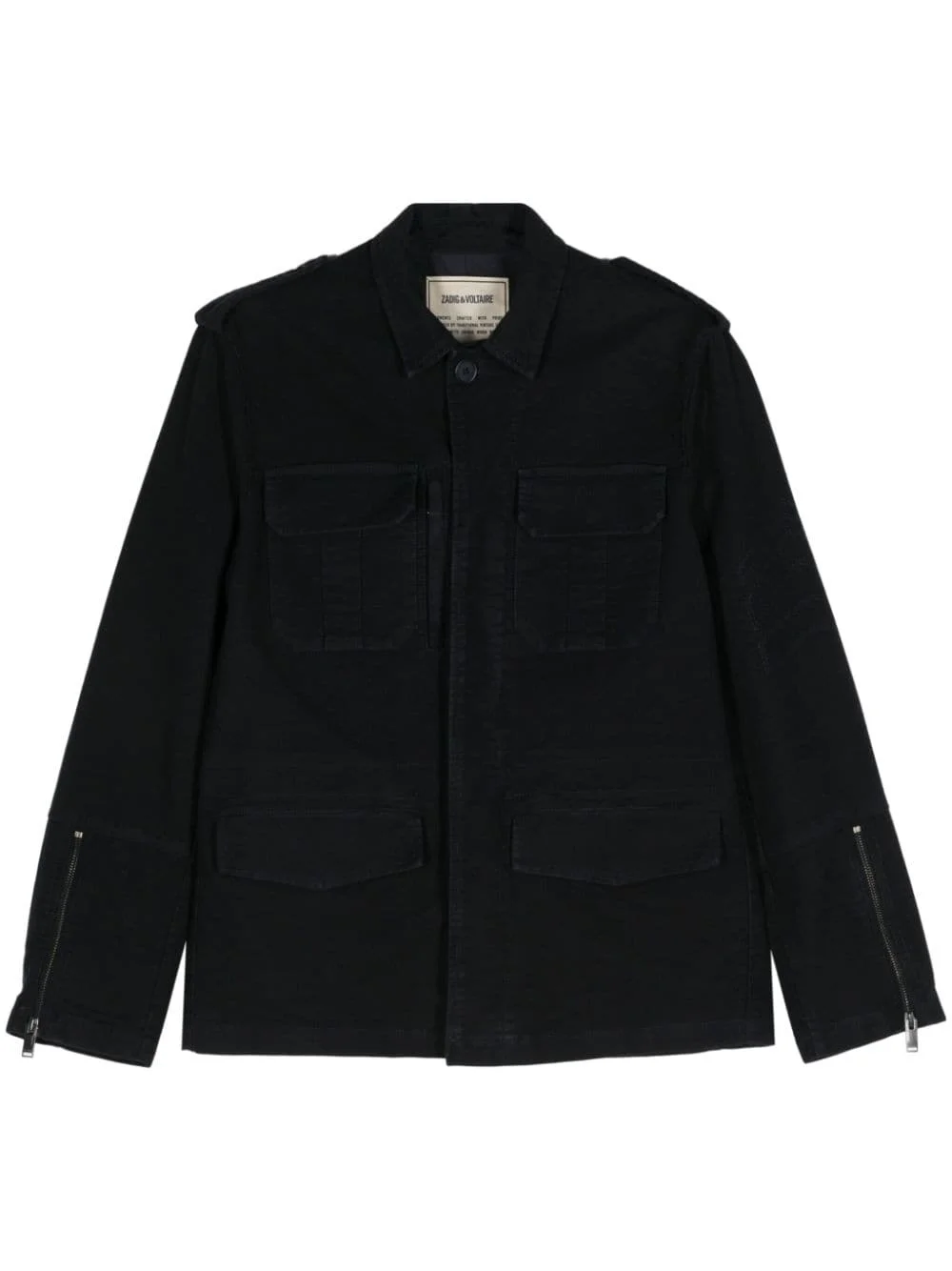 Keegan Moleskine cotton jacket Highlights - Midnight blue - Cotton - Tonal stitching - Epaulettes - Classic collar - Long sleeves - Cuffs zips - Four front flap pockets - Zip-fastening pocket - Multiple internal slip pockets - Full lining - Front button fastening Imported Composition Cotton 100%