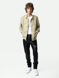 Men's light beige military style jacket. Description & details - Men's light beige jacket - Military style jacket - Button closure down front - Side pockets with flap button closures - Zipper chest pockets - Buttoned shoulder tabs Model is 188 cm / 6' 2" and is wearing a size M This item is true to size. We recommend buying your usual size. Composition 100% LINEN Care This garment should be dry-cleaned only. Product code: WMOW00376_LIGHT BEIGE