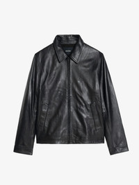 Sleek zip-up jacket in smooth leather with piped pockets and embossed wings signature on the back. Description & details - Smooth leather jacket - Piped pockets - Long sleeves - Zip closure - Embossed wings signature on the back Model is 191 cm / 6' 3" and is wearing a size M This item fits true to size. Choose your usual size. Composition 100% Lambskin Care This garment should be cared for by a leather professional. Product code: RMOW01135_BLACK
