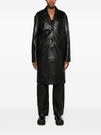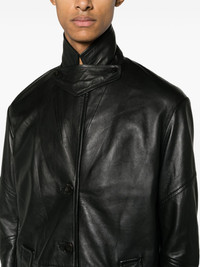 Macari buttoned leather coat Highlights - Black - Lambskin - Smooth grain - High neck - Detachable neck flap - Notched lapels - Front button fastening - Long sleeves - Straight hem - When buying this unisex item, keep in mind that it is graded in standard men's sizing. Imported Composition Outer: Lamb Skin 100% Lining: Cotton 100%, Polyester 100% SIZE & FIT Model measurements Height 5 ft 9 in(1.76 m) Bust/Chest 33.07 in(84 cm) Hips 38.58 in(98 cm) Waist 24.8 in(63 cm) Washing instructions Specialist Cleaning