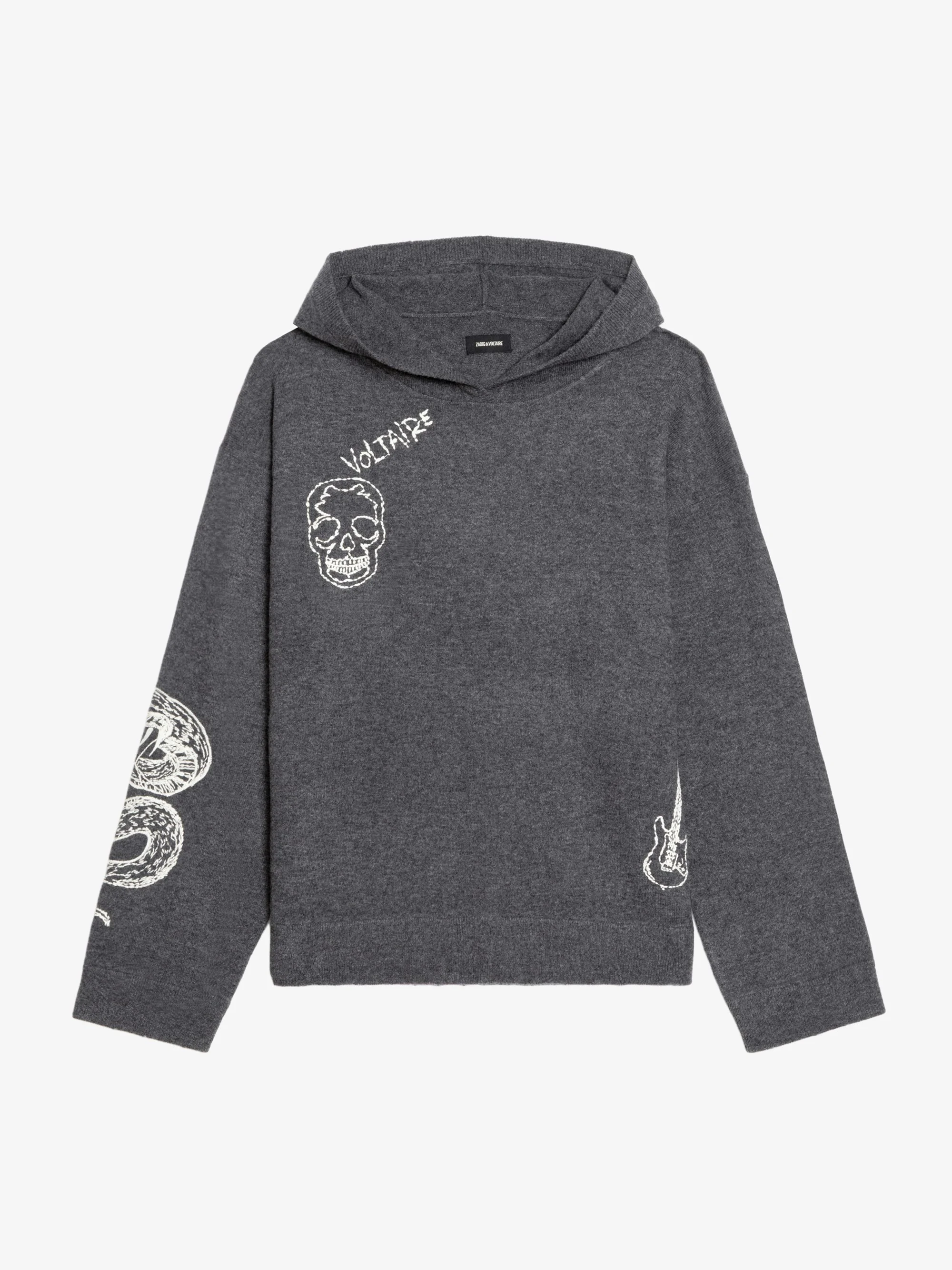 Hooded sweater with long sleeves. Description & details - Hooded sweater - Multi-customization embroidery - Hood - Long sleeves Model is 188 cm / 6' 2" and is wearing a size M This item fits true to size. Choose your usual size. Composition 90% Merino wool* 10% Cashmere Care - Hand-wash or machine-wash on a 20°C wool cycle with a maximum spin speed of 400 rpm - Do not wring - Air dry flat - Iron inside out at a maximum of 110°C, avoiding any customised details Product code: KMSW01837_CHARCOAL