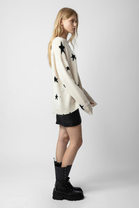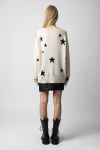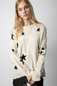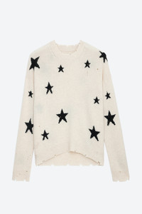 Unisex cashmere sweater with destroy detailing and intarsia jacquard star motifs. Description & details - Unisex Sugar cashmere sweater - Contrasting intarsia jacquard star motifs, destroy-effect holes and pointelle ZV signature - Round neckline - Long sleeves and ribbed trim Model is 170 cm / 5' 6" and is wearing a size S This item is true to size. We recommend buying your usual size. Composition 100% CASHMERE Care Hand or machine wash your knitwear at 68°F in a pillowcase or washing bag. Do not use fabric softener or leave your knit soaking in water. The spin speed must not exceed 400 rpm. Dry flat on a towel away from direct sunlight and heat. Product code: KWSW01572_SUGAR