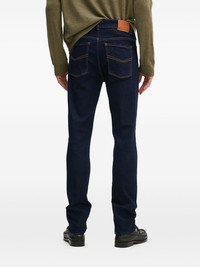 logo-plaque slim-fit jeans Highlights - Dark blue - Leather logo patch - Contrast stitching - Five-pocket styling - Straight leg Imported Composition Cotton 98%, Elastane 2% Washing instructions Read Manufacturer Guidelines