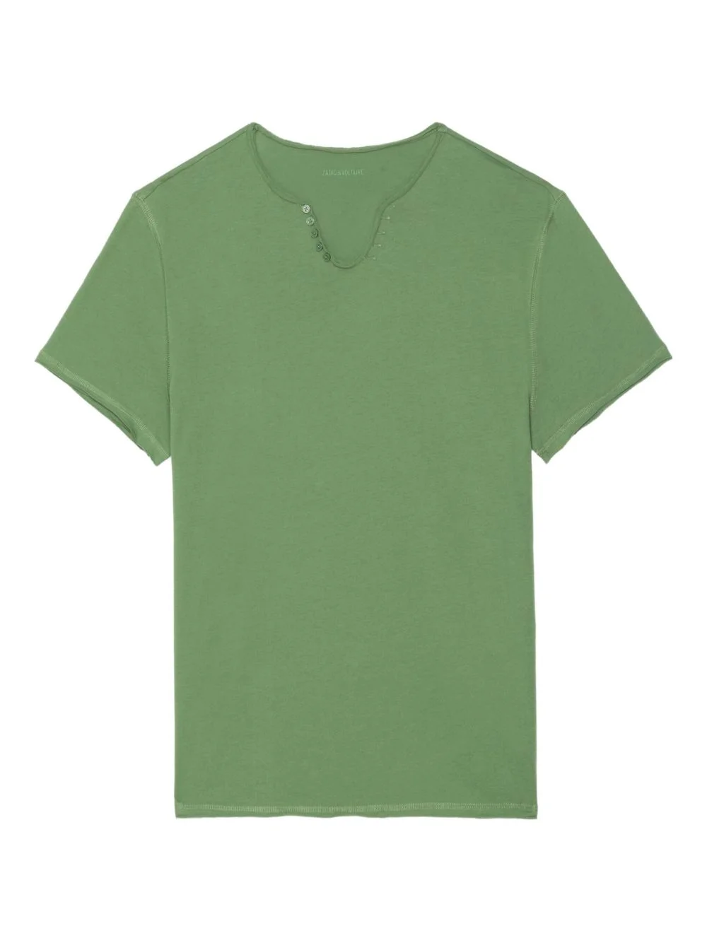 Monastir T-shirt Highlights - Green - Text print - Button fastening - Short sleeves - Raw-cut hem Imported Composition Cotton 100% Washing instructions Machine Wash
