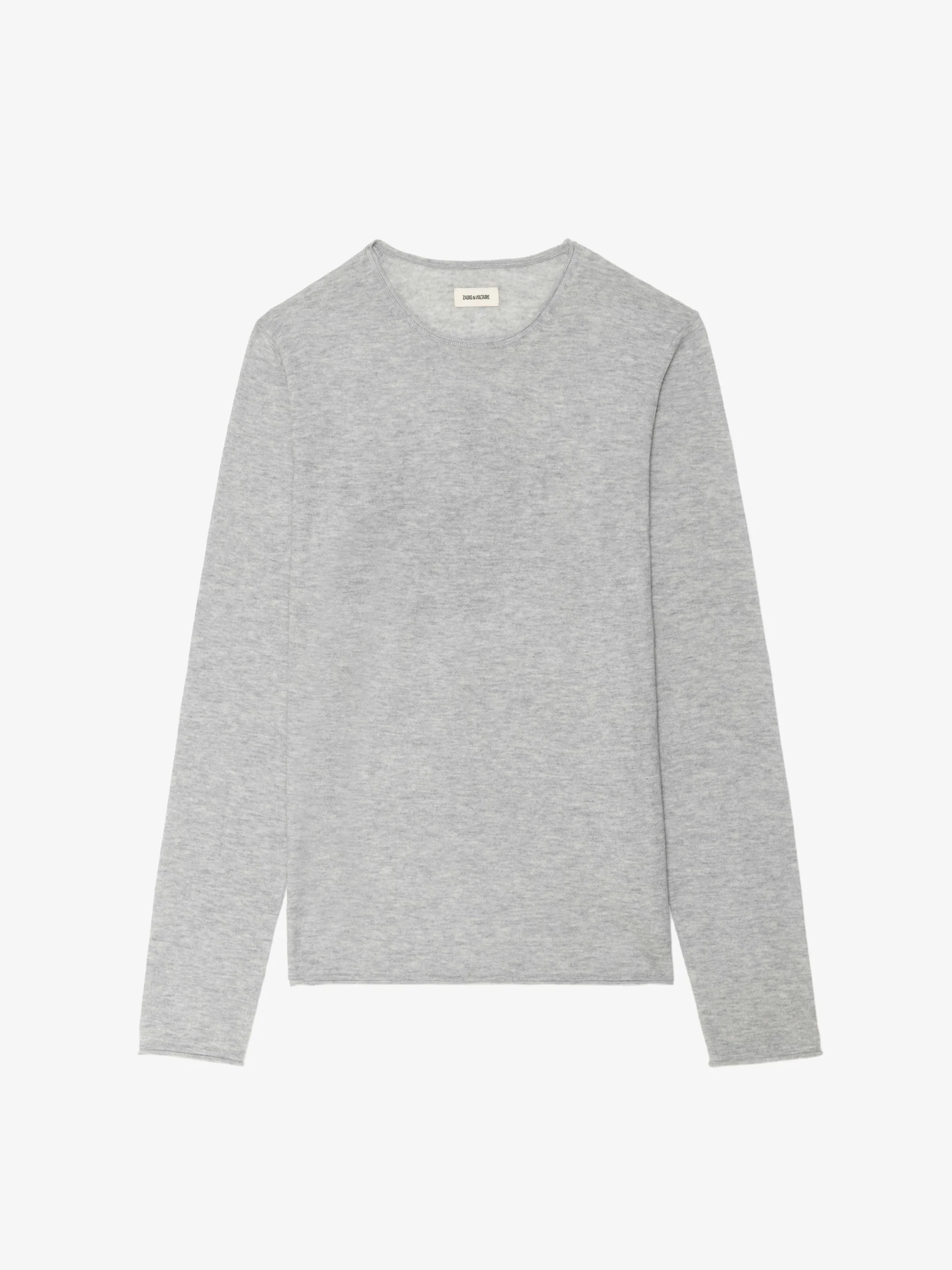 Round neck sweater with long sleeves featuring a print on the back. Description & details - Fine sweater in 100% cashmere - Print on the back - Round neck - Long sleeves Model is 191 cm / 6' 3" and is wearing a size M This item fits true to size. Choose your usual size. Composition 100% Cashmere Care - Hand-wash or machine-wash on a 20°C wool cycle with a maximum spin speed of 400 rpm - Do not wring - Air dry flat - Iron inside out at a maximum of 110°C, avoiding any customised details Product code: KMSW01816_GRIS CHINE CLAI