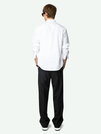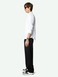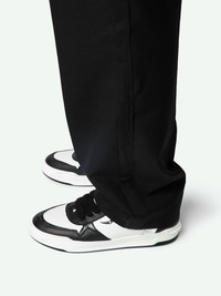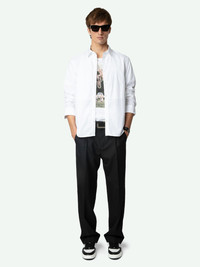 Black wool wide-leg darted trousers with strap and Studio label. Description & details - Men’s black wool wide-leg trousers with darts - Zip and button fastening, belt loops and side tabs with adjustable metal buckle - 2 side pockets, 1 buttoned flap pocket and 1 double welt pocket at the back - Studio Homme tailoring label on the back - Made in Portugal Model is 188 cm / 6' 2" and is wearing a size 38 Composition 55% Polyester** 45% Virgin wool Care - This garment should be dry-cleaned only - Iron inside out at a maximum of 110°C, avoiding any customised details Product code: WMPA00198_NOIR