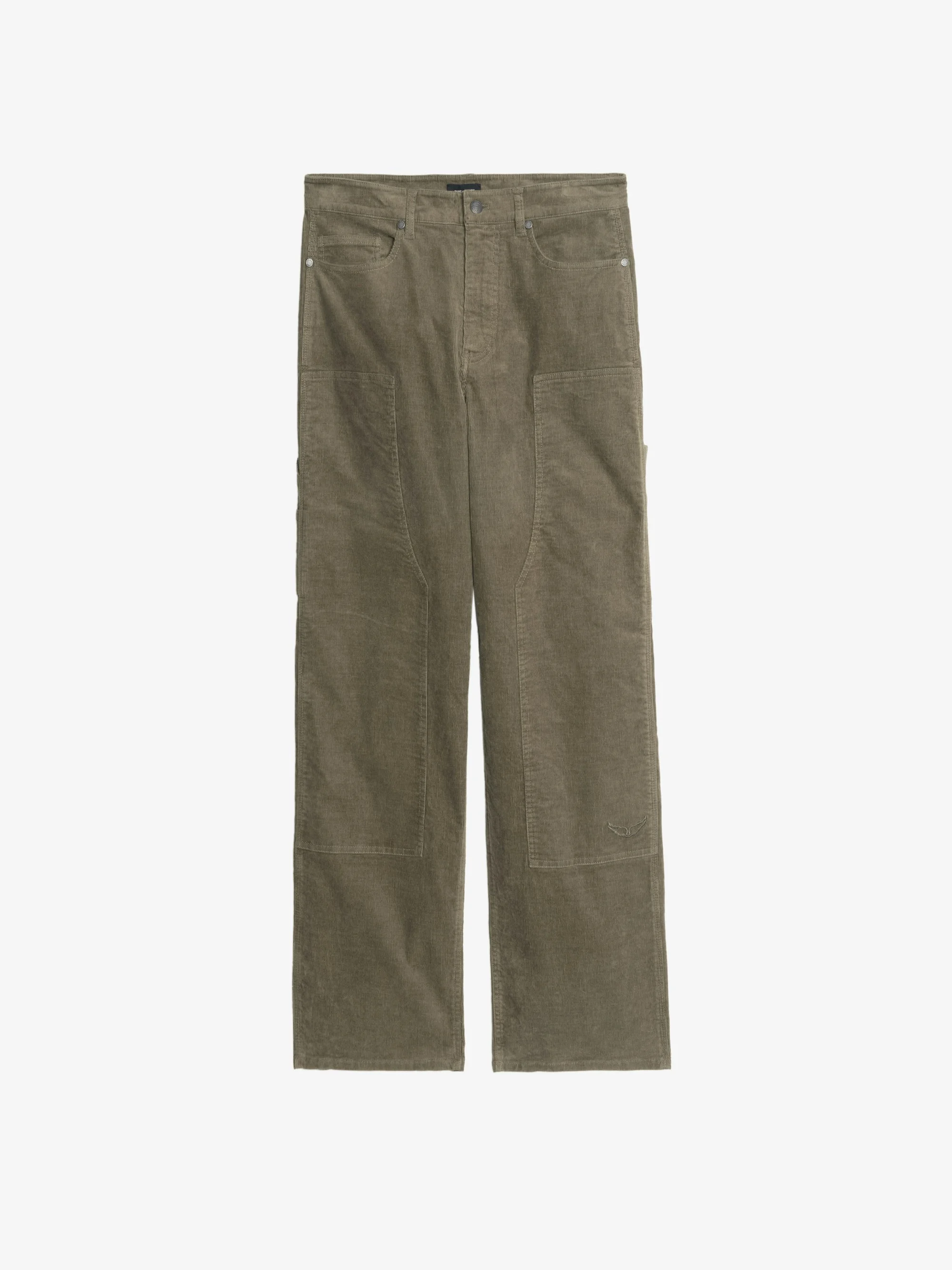 Worker-style pants with rivet and wing patch details. Description & details - Worker-style corduroy pants - Zip closure - 5 pockets - Rivet and wing patch details - Regular fit Model is 188 cm / 6' 2" and is wearing a size M This item fits true to size. Choose your usual size. Composition 98% Cotton** 2% Elasthanne Care - This garment should be dry-cleaned only - Iron inside out at a maximum of 110°C, avoiding any customised details Product code: WMPA01215_LEAVES