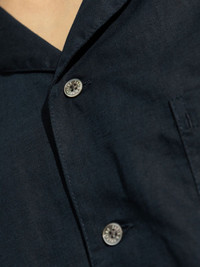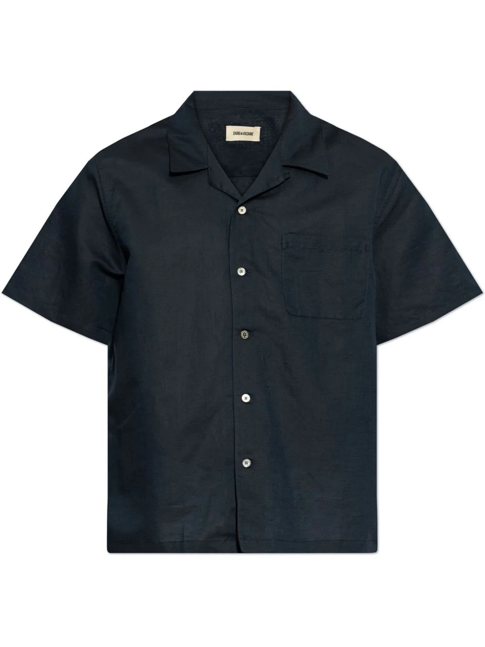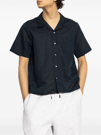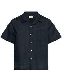 short-sleeved shirt Highlights - Navy blue - Front button fastening - Chest patch pocket - Cuban collar - Straight hem Imported Composition Linen/Flax 60%, Cotton 40%