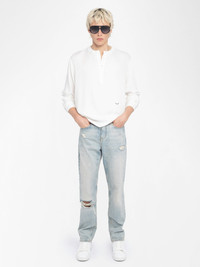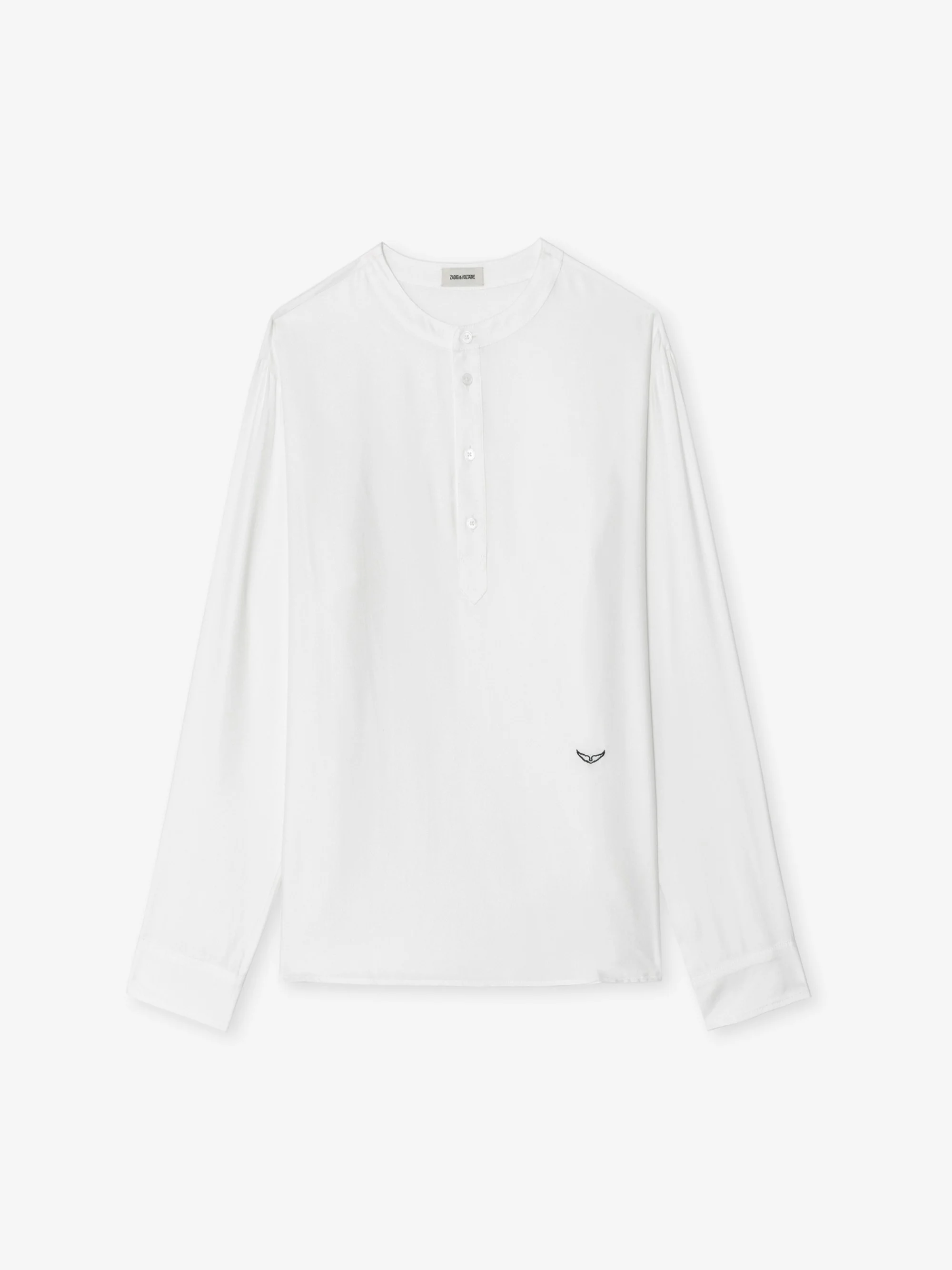 Light shirt with a tunic collar, discreetly puffed sleeves with button closure. Description & details - Shirt - Tunic collar with 5 buttons - Long sleeves - Slightly puffed sleeves - Button closure Model is 189 cm / 6' 2" and is wearing a size M This item fits true to size. Choose your usual size. Composition 100% Modal Care - Hand-wash or machine-wash inside out in a mesh laundry bag on a 20°C delicate cycle with a maximum spin speed of 400 rpm - Air dry flat - Iron inside out at a maximum of 110°C Product code: WMSH01342_JUDO