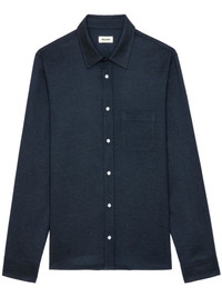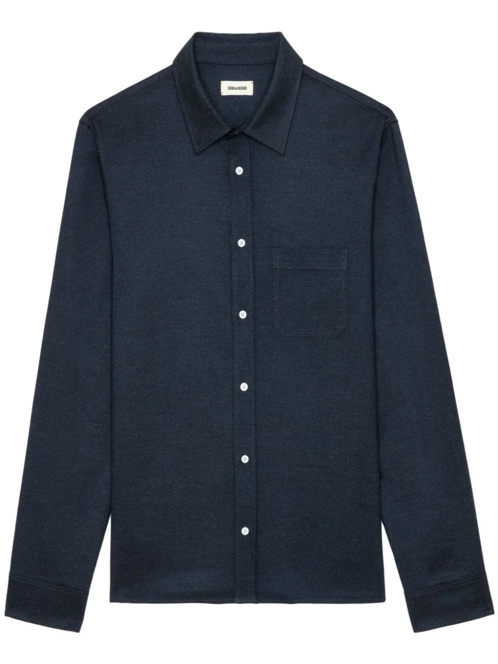 Stan shirt Highlights - Navy blue - Flannel - Straight-point collar - Front button fastening - Long sleeves - Buttoned cuffs - Chest patch pocket - Straight hem Imported Composition Polyester 64%, Viscose 34%, Elastane 2% Washing instructions Read Manufacturer Guidelines