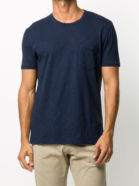 Stockholm short sleeved T-shirt Highlights - Navy - Cotton - Jersey knit - Distressed effect - Chest patch pocket - Logo print to the rear - Crew neck - Short sleeves - Straight hem Imported Composition Cotton 100% SIZE & FIT Model measurements Height 6 ft 1 in(1.85 m) Bust/Chest 37.79 in(96 cm) Hips 37.4 in(95 cm) Waist 30.7 in(78 cm) FittingInformation This piece fits true to size. We recommend you get your regular size Cut for a relaxed fit Made with a lightweight fabric