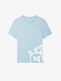 Short-sleeved T-shirt with front print. Description & details - T-shirt - Skull XO print at the bottom front - Round neck - Short sleeves Model is 187 cm / 6' 1" and is wearing a size M This item fits true to size. Choose your usual size. Composition 100% Cotton* Care - Machine-wash inside out on a 30°C delicate cycle with similar colours - Air dry - Iron inside out at a maximum of 110°C, avoiding any customised details Product code: JMTS01676_CLOUD