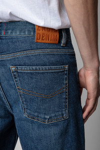 Men’s straight-cut blue denim jeans Description & details Wide-leg straight-cut blue denim 5-pocket jeans. - Zadig&Voltaire men’s straight-cut blue jeans - Medium blue denim - Fitted legs - 5 pockets - Button fly - Belt loops - Leather label on back Model is 188 cm/6'2" and is wearing a size 30 Model is 188 cm / 6' 2" and is wearing a size 30 This item is true to size. We recommend buying your usual size. Composition 99% COTTON* 1% ELASTHANE Care - Machine-wash inside out on a 30°C delicate cycle with similar colours - Air dry - Iron inside out at a maximum of 150°C, or in case of customised details, at a maximum of 110°C avoiding the customised details Product code: WMJE00015_MEDIUM BLUE