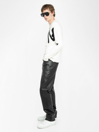 Men’s navy blue feather cashmere sweater. Description & details -Zadig&Voltaire Men’s navy blue feather cashmere sweater - Round neck - Long sleeves - Raw edges This item fits true to size. Choose your usual size. Composition 95% Cotton* 5% Cashmere Product code: KMSW01780_ECRU