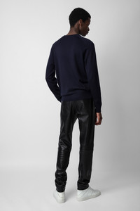 Men’s navy blue sweatshirt with ZV embroidery. Description & details - Men’s Encre navy blue sweatshirt - Tone-on-tone ZV embroidery on the hem - Round neckline, long sleeves and ribbed trim Model is 188 cm / 6' 2" and is wearing a size M This item is true to size. We recommend buying your usual size. Composition 51% COTTON 41% SILK 8% CASHMERE Care Hand or machine wash your knitwear at 20°C in a pillowcase or washing bag. Do not use fabric softener or leave your knit soaking in water. The spin speed must not exceed 400 rpm. Dry flat on a towel away from direct sunlight and heat. Product code: KMSW00651_ENCRE
