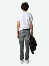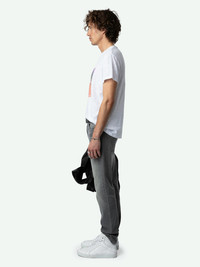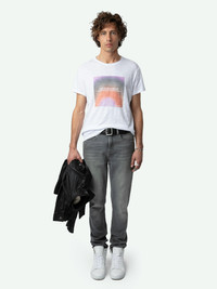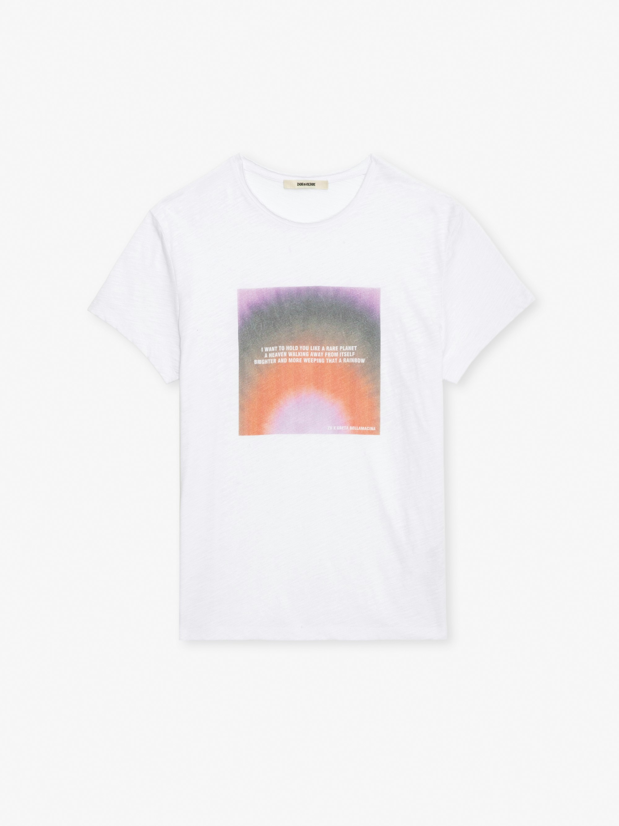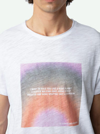 Short-sleeved organic slub cotton T-shirt with photoprint and Greta poem print on the front. Description & details - Men’s white organic slub cotton T-shirt - Photoprint and Greta poem print on the front - Round neck with rolled edges - Short sleeves Model is 183 cm / 6' 0" and is wearing a size M This item is true to size. We recommend buying your usual size. Composition 100% COTTON* Care - Machine-wash inside out on a 30°C delicate cycle with similar colours - Air dry - Iron inside out at a maximum of 110°C, avoiding any customised details Product code: JMTS00649_BLANC