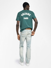 Short-sleeved T-shirt with back print. Description & details - T-shirt in 100% cotton - "Voltaire Paris" inscription on the back - Round neck - Short sleeves Model is 189 cm / 6' 2" and is wearing a size M This item fits true to size. Choose your usual size. Composition 100% Cotton* Care - Machine-wash inside out on a 30°C delicate cycle with similar colours - Air dry - Iron inside out at a maximum of 110°C, avoiding any customised details Product code: JMTS01734_BOTANICAL