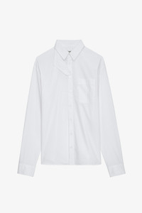 White cotton long shirt with button closure, pockets and removable decorative collar band. Description & details The Tyrone shirt is part of the UNISEX collection. A free-spirited wardrobe by Zadig&Voltaire, the UNISEX collection represents the fusion of feminine and masculine features. - Unisex Judo white cotton long shirt - Mock neck with removable collar band featuring wings motif - Chest pocket - Long sleeves and buttoned cuffs - Made in Portugal This item runs large. We recommend buying one size smaller than your usual size. Composition 100% COTTON* Care - Hand-wash or machine-wash inside out in a mesh laundry bag on a 20°C delicate cycle with a maximum spin speed of 400 rpm - Air dry flat - Iron inside out at a maximum of 110°C Product code: WWSH00551_JUDO