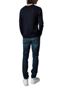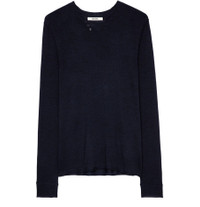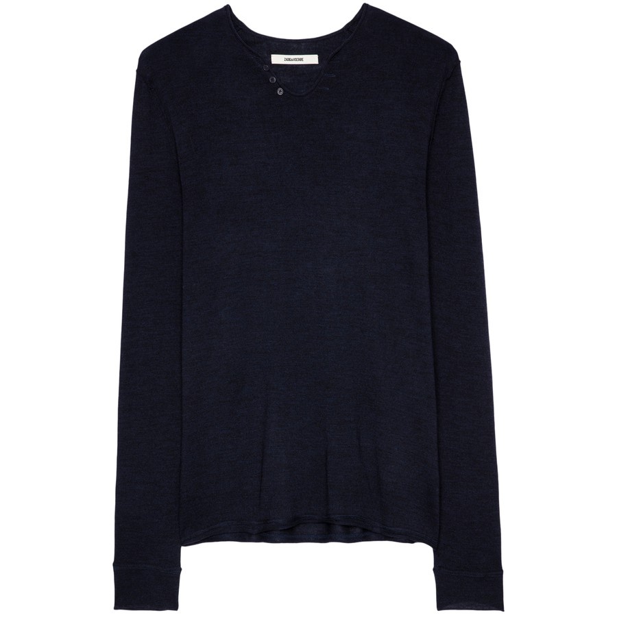 DESCRIPTION - Long-sleeved t-shirt - V-neck - Front buttons - Ribbed - Flowing cut DETAILS AND CARE MATERIAL: 100% Merino COLOR: encre COUNTRY OF MANUFACTURE: Madagascar PRODUCT CODE: ZAD9F825BLU4TAAA00