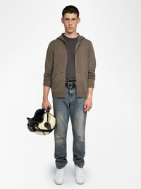 Hooded cardigan with zip closure featuring front patch and western back detail. Description & details - Wool and cashmere cardigan - Front patch and western embroidered skull - Hood - Zip closure - Long sleeves Model is 188 cm / 6' 2" and is wearing a size M This item fits true to size. Choose your usual size. Composition 90% Wool* 10% Cashmere Care - Hand-wash or machine-wash on a 20°C wool cycle with a maximum spin speed of 400 rpm - Do not wring - Air dry flat - Iron inside out at a maximum of 110°C, avoiding any customised details Product code: KMCA01267_TAUPE