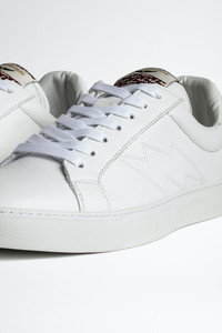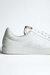 Men’s white leather sneakers with lightning bolt topstitching Description & details The ZV1747 sneakers, a Zadig&Voltaire signature item, here in an all-white version with tone-on-tone lightning bolt topstitching - Zadig&Voltaire men’s sneakers - White calfskin - Lightning bolt topstitching - Made in Portugal - Made in Portugal. Platform insole: 2.8 cm Composition 100% CALFSKIN Care - Protect your leather item from humidity and any source of heat (radiator, sun) - Avoid your item coming into contact with water - Regularly maintain the shine of your smooth or grained leather shoes with a leather polish Product code: WKAM1701H_BLANC