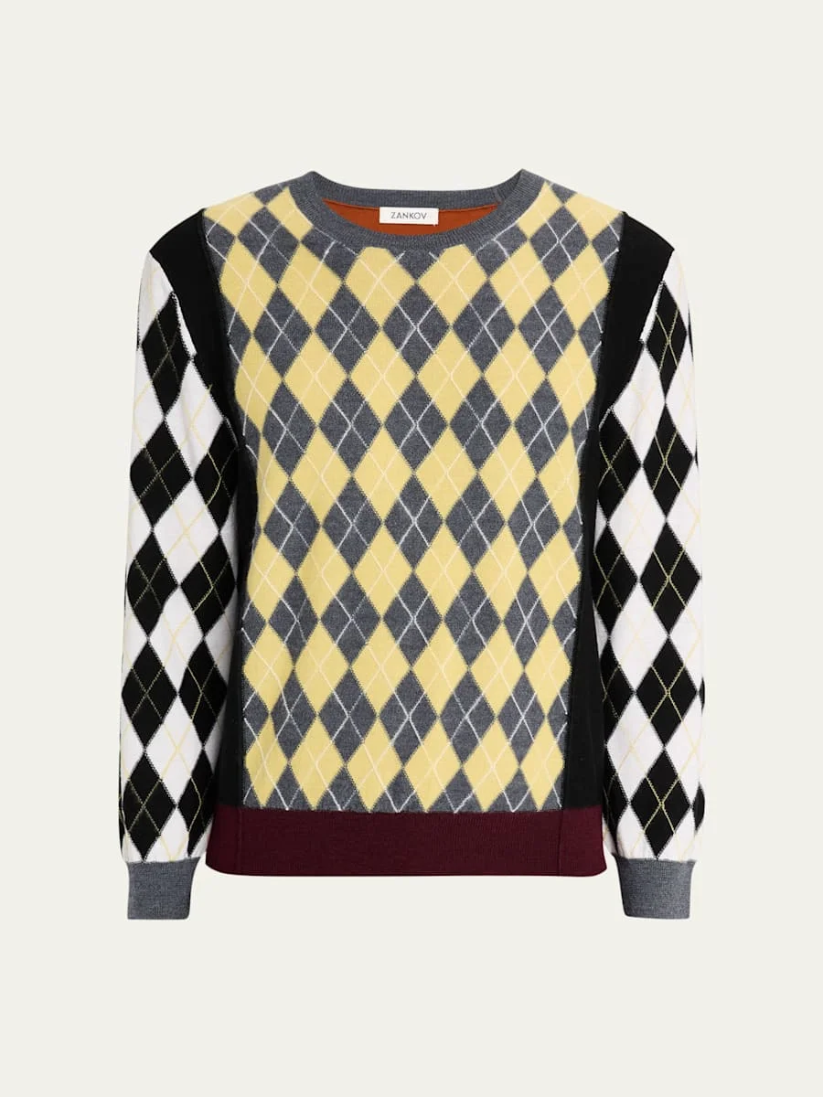 ZANKOV sweater crafted from premium merino wool, boasting a classic argyle pattern paired with a bold color-block design Crew neckline Long sleeves Contrast ribbed cuffs and hem Pullover style Classic fit Merino wool Made in Italy Proposition 65 warning for California residents Online Inquiries: BGS21_NDR6W| Store Inquiries: #5070546