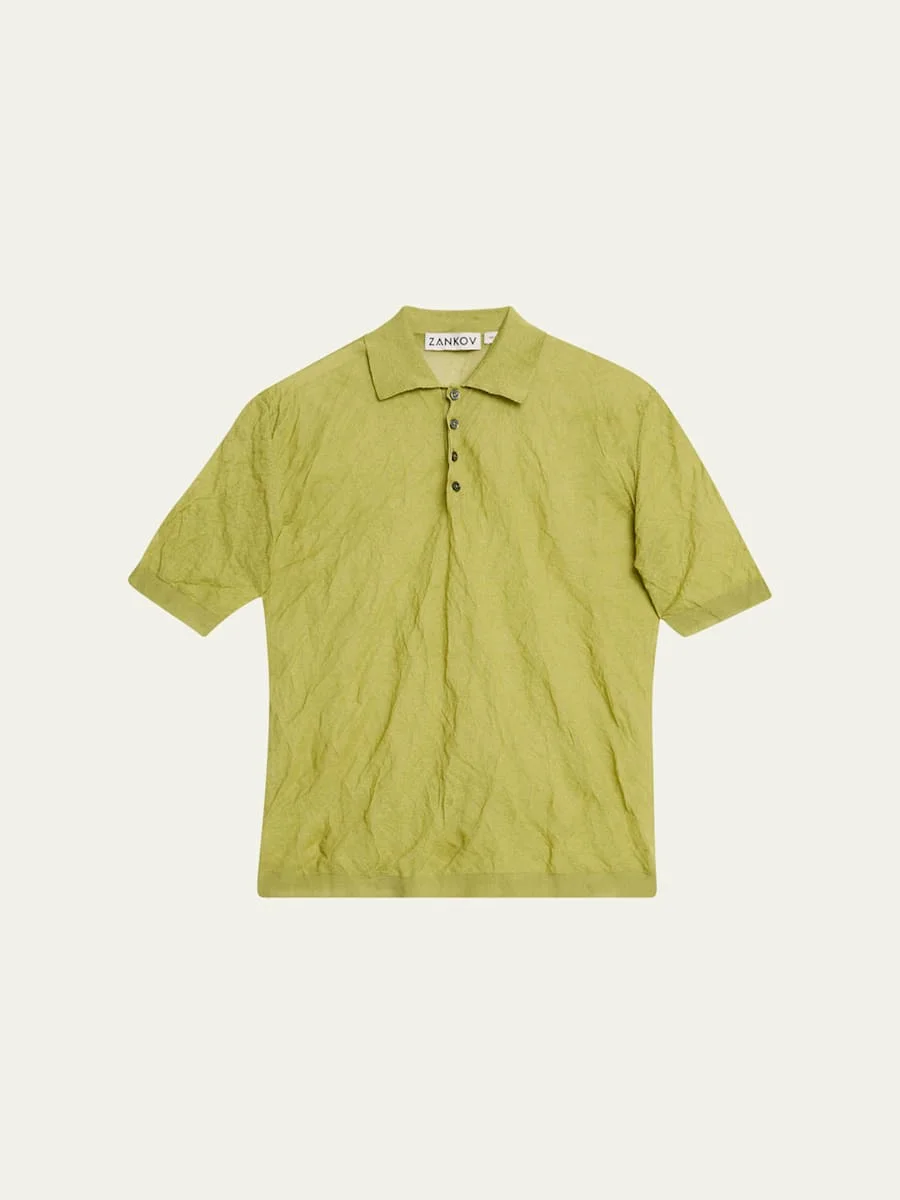 ZANKOV polo shirt in lightweight, crinkled fabric Classic spread collar Four-button placket Short sleeves Banded cuffs and hem Pullover style Cotton/modal Imported Online Inquiries: BGS21_NCJXV| Store Inquiries: #4896327