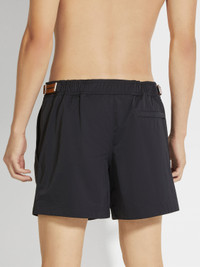 Choose a more elegant take on swimwear with the black swim boxers' tailored construction. INFO Designed with a structured fit, the black swim boxers feature adjustable side fasteners. The Zegna 232 Road Brand Mark along the sides adds a graphic accent to the sleek design. PRODUCT CODE N7B54-240-001 MATERIALS AND CARE 100% Polyamide Hand wash. Do not bleach. Do not tumble dry. Do not iron. Do not dry clean. FIT AND PRODUCT DETAILS • Boxers • Adjustable side fasteners with Zegna 232 Road Brand Mark tape • Fits true to size