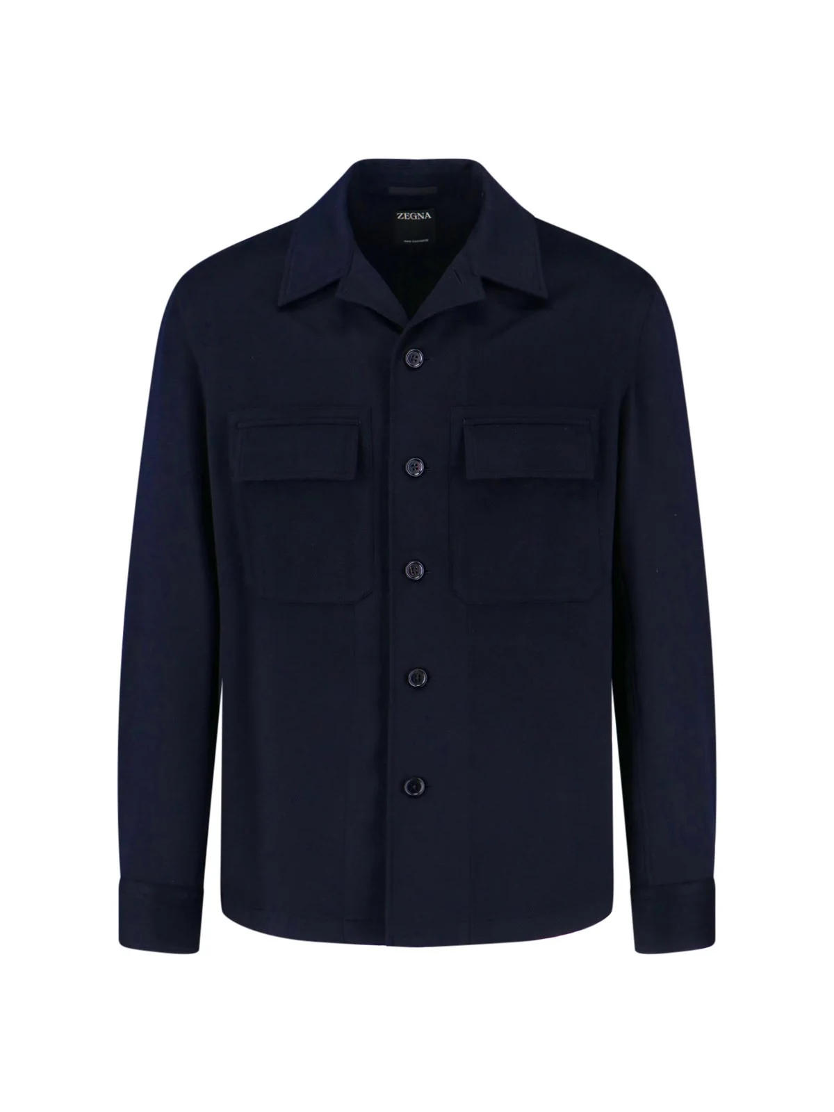 ZEGNA 'ALBA' WOOL SHIRT JACKET IN NAVY SHADES, CLASSIC COLLAR, BUTTON CLOSURE, TWO SOURCE POCKETS, BUTTON CUFFS, STRAIGHT HEM. PRODUCT INFO PRODUCT CODE RUGV01A2 SOTM2016G COMPOSITION: 100% WOOL SIZE AND FIT: REGULAR FIT MADE IN: TURKEY