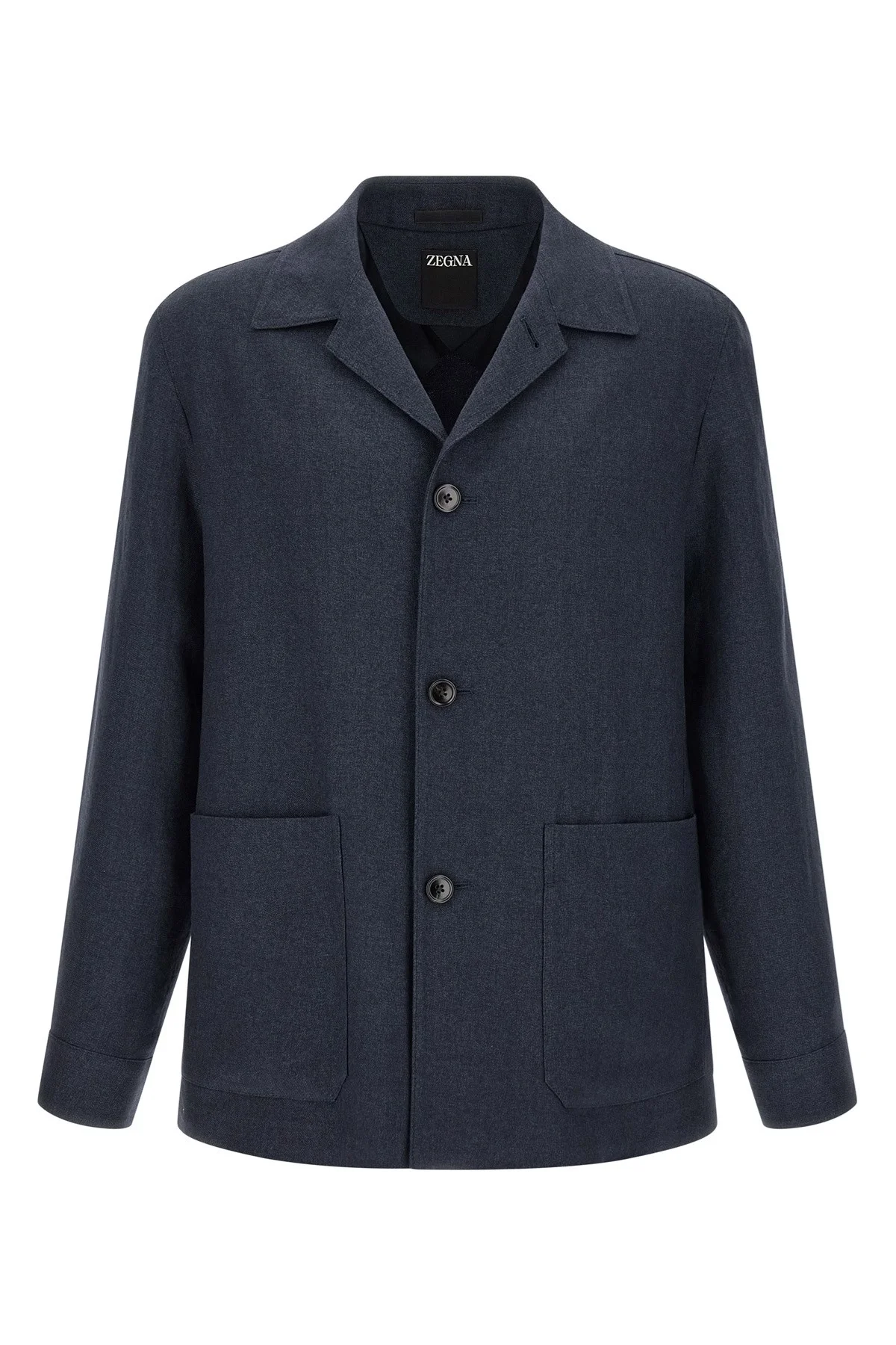 cod. 376C52A31DHAQ0412 'Alpe' jacket in linen and wool blend melange with unstructured and adhesive construction, shirt collar, leather 'ZEGNA 232 Road Brand Mark' patch at the back, front button closure, pockets, long cuffed sleeves, back vents, unlined. Color: Blue Size & Fit: true to size fit Composition: 60% linen, 40% wool Made in: Turkey
