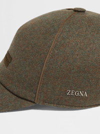 Leather piping outlines the army green multimelange Oasi Cashmere baseball cap. INFO Made from one of the brand's softest cashmere fabrics, the army green multimelange Oasi Cashmere baseball cap is a luxurious take on a casual essential. The embroidered Zegna 232 Road Brand Mark on the front add an extra accent. The cap is lined with soft wool and cashmere. PRODUCT CODE Z8I04HA8-B8G-GN1 MATERIALS AND CARE Main body: 100% Cashmere Leather details: Calfskin Lining: 90% Wool; 10% Cashmere The inspiration behind this Oasi Cashmere Collection garment was Born in Oasi Zegna, our 100km² natural territory and the home of our values. It's crafted from Oasi Cashmere fibres, which ZEGNA commits to certifying as traceable from 2024. The Oasi Cashmere Collection follows in the footsteps of our founder, who envisioned a vertically integrated system of producing textiles. Do not wash. Do not bleach. Do not tumble dry. Do not iron. Do not dry clean. FIT AND PRODUCT DETAILS • Leather piping • Wool and cashmere lining • Embroidered Zegna 232 Road Brand Mark on the front • Made in Italy • Fits true to size